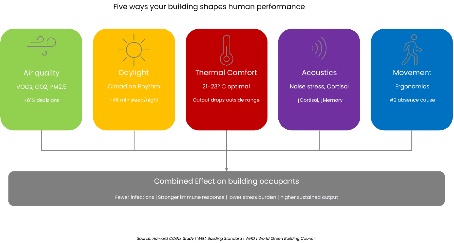 Buildings don't feel neutral. Every design and operational choice consciously or not is either supporting or degrading the people inside them.