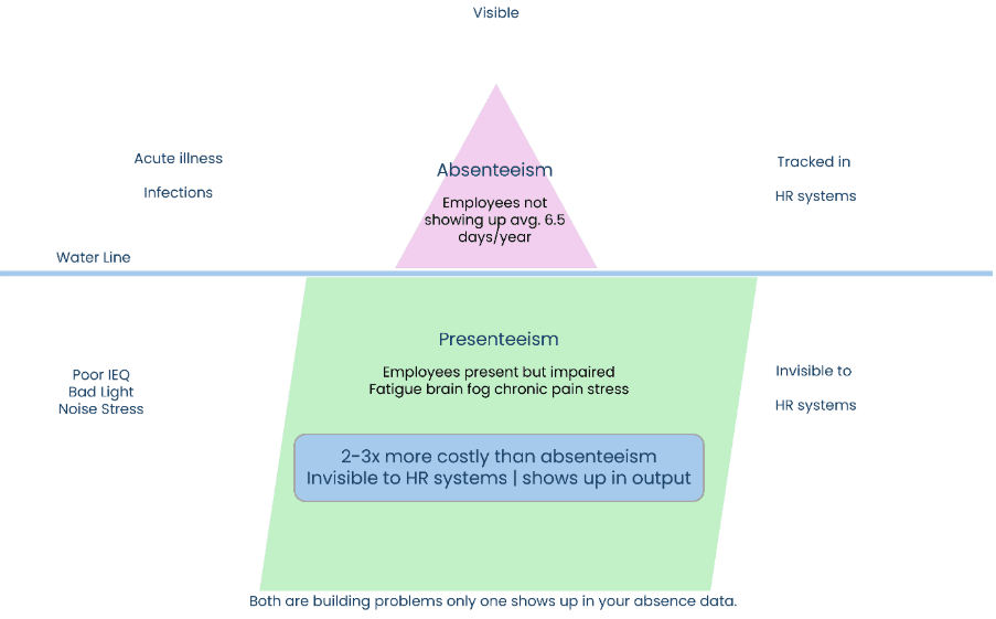 Picture this: It's Monday morning. Across your organization, 12% of your workforce hasn't shown up. The ones who did are sitting under flickering fluorescent lights, breathing recycled air that's quietly suppressing their cognitive performance by up to 50%. By noon, half of them will be fighting a headache they'll attribute to stress, but the real culprit is the building around them.