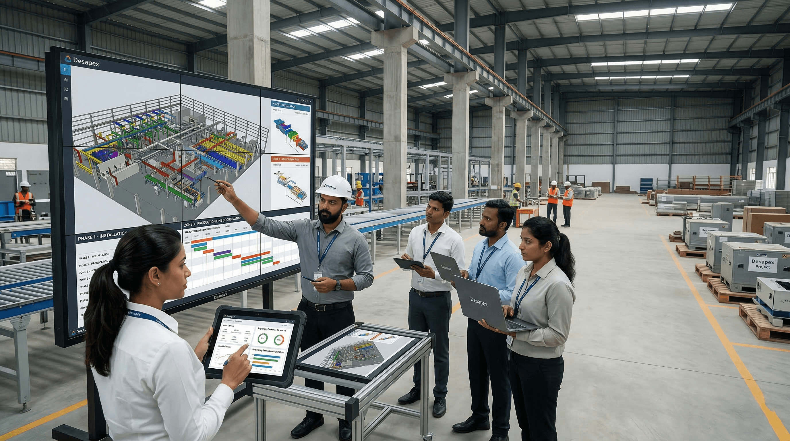 Desapex delivers digital engineering solutions for manufacturing facilities by integrating BIM coordination, production layout planning, construction monitoring, and smart factory digital twin platforms. Modern factory buildings must support complex production processes, heavy equipment installations, and highly coordinated MEP infrastructure. Desapex enables manufacturers and industrial developers to design and build efficient production facilities through digital-first engineering workflows. By combining scan-to-BIM modeling, multidisciplinary coordination, and lifecycle facility intelligence, we help organizations optimize factory performance and support Industry 4.0 transformation.